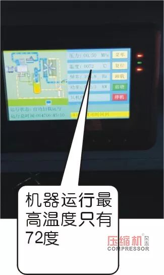 今年一月底,一位浙江绍兴同行售后师傅反映一台国产空压机一直存在跑油情况。到达现场时机器正在运行,从储气罐里面放出较多机油,机器油位也明显下降(已到油位镜下标线下方)。控制面板上看到机器运行温度只有72度,询问空压机用户的设备管理师傅,他表示机器排气温度还经常处于六十几度,初步判断是机器长期低温运行造成机器跑油。